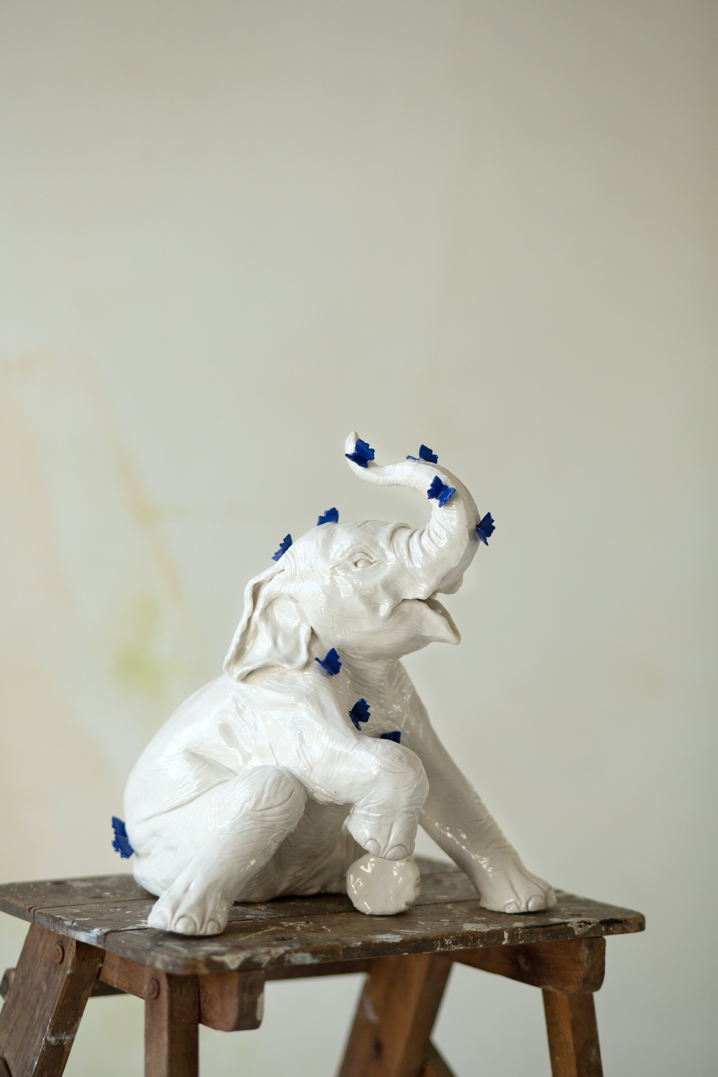 Her work navigates emotional landscapes through animals, flowers and urban intervention. Working across porcelain, paint and public spaces, She explore what survives, what fractures and what heals.